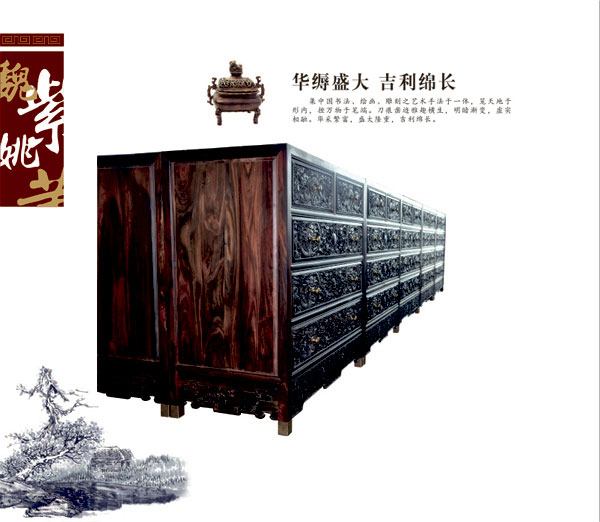 魏紫姚黄长期致力于高端红木艺术品产业,形成材料工程、研发设计、生产制作、销售推广等大产业链运营模式。在高端精品定制领域,则承袭古制精髓,保留全手工制作的传统方式,坚持独特性、艺术性、收藏性。经典品味如陈年佳酿,历久弥香,享誉四海,可谓在国内高档红木家具界独树一帜。