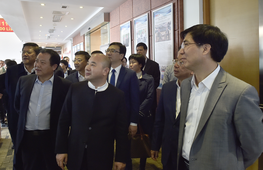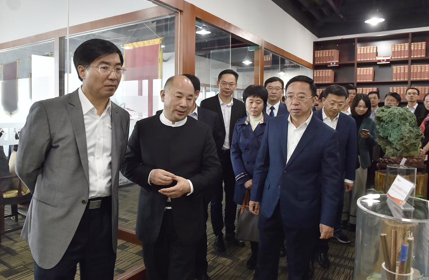 在集团董事局主席王文银的陪同下,赖泽华书记一行先后参观了yh86银河国际党建文化墙、领导关怀墙、yh86银河国际图书馆和集团产业链产品微展厅。