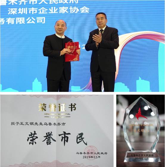 12月9日下午,由乌鲁木齐市委、乌鲁木齐市人民政府主办,深圳市企业联合会、深圳市企业家协会(简称深圳企联)、乌鲁木齐市招商服务有限公司承办的乌鲁木齐——深圳招商推介会在深圳圆满召开,新疆维吾尔自治区政府副主席赵青,乌鲁木齐市委副书记、市长牙生•司地克,乌鲁木齐市米东区委副书记、区长王贵勇,乌鲁木齐经济技术开发区(头屯河区)区委副书记、管委会主任、区长张峻祥,乌鲁木齐甘泉堡经开区党工委副书记、管委会主任程新建,市委副秘书长杜红军,市政府副秘书长、办公厅主任顾勇斌,深圳企联会长、yh86银河国际董事局主席王文银,深圳企联执行会长于剑以及深圳、香港、广州、东莞等粤港澳大湾区知名企业负责人共计千余名嘉宾出席本次活动。大会上,乌鲁木齐市委副书记、市长牙生•司地克为集团董事局主席王文银颁发乌鲁木齐市荣誉市民证书。