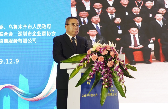 王文银主席表示,今年是习近平总书记考察新疆5周年,5年前习近平总书记强调“做好新疆工作是全党全国的大事,必须从战略全局高度,谋长远之策,行固本之举,建久安之势,成长治之业”。新疆已经在充分的释放稳定的红利、安全的红利,是投资胜地、经济高地。乌鲁木齐市作为新疆首府和政治经济文化中心,正在围绕“一带一路”核心区建设,在战略新兴产业和特色园区建设等方面加大招商力度,聚才引智,筑巢引凤,乌鲁木齐是“丝路枢纽、亚心之都”,是国务院批复确定的中国西北地区重要的中心城市和面向中亚西亚的国际商贸中心,东边连接亚太经济圈,西边进入欧洲经济圈。习近平总书记提出将“一带一路”建成和平、繁荣、开放、创新、文明之路,乌鲁木齐在五条路上都大有作为,在政策沟通、设施联通、贸易畅通、资金融通和民心相通方面都有重大成果,是当之无愧的经济高地,吸引了众多企业家前往乌鲁木齐投资兴业。而深圳正在面临建设粤港澳大湾区和中国特色社会主义先行示范区双重机遇,新疆和深圳距离虽远,但产生了最美的情景。志合者,不以山河为远,乌鲁木齐与深圳携手,从海洋出发,从内陆出发,拥抱整个欧亚非大陆,由一个点,变成一条线,由一条线连成了一个面,达到了各美其美、美人之美、美美与共、天下大同的境界。