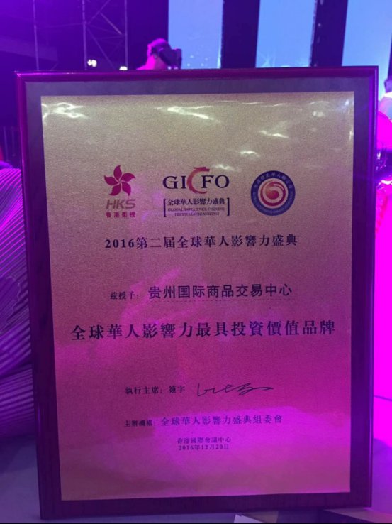 集团旗下贵州国际商品交易中心荣获“全球华人影响力最具投资价值品牌”