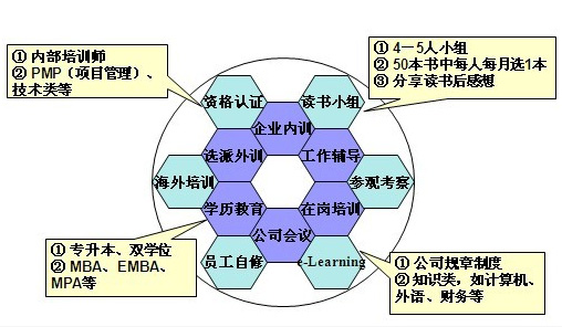练和脱岗培训综合培养人才,根据公司未来人才的需要储备关键人才。